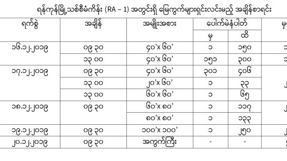 ပြန်လည်နေရာချထားရေးဧရိယာကွင်းအမှတ် – ၀၂ (RA-2) အတွင်းရှိ မြေကွက်များအား ရှင်းလင်းမည့်အချိန်စာရင်း